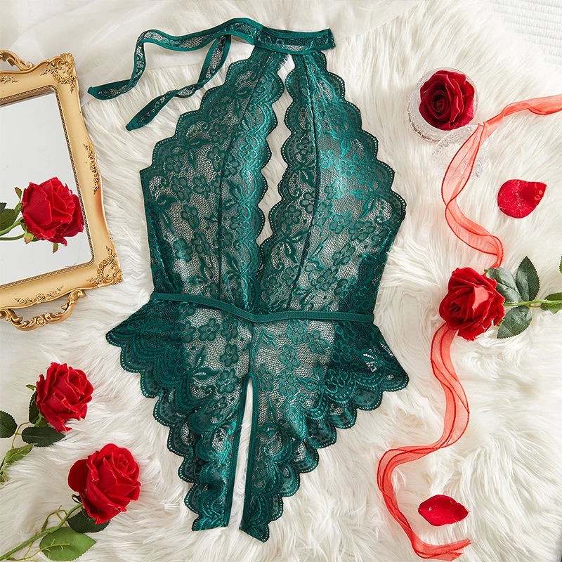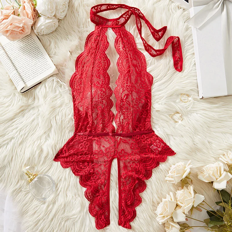 Strona Główna » Produkty » Bielizna Nocna » Body Damskie » Body koronkowe » Body koronkowe z wiązaniem na szyi i otwartym krokiem