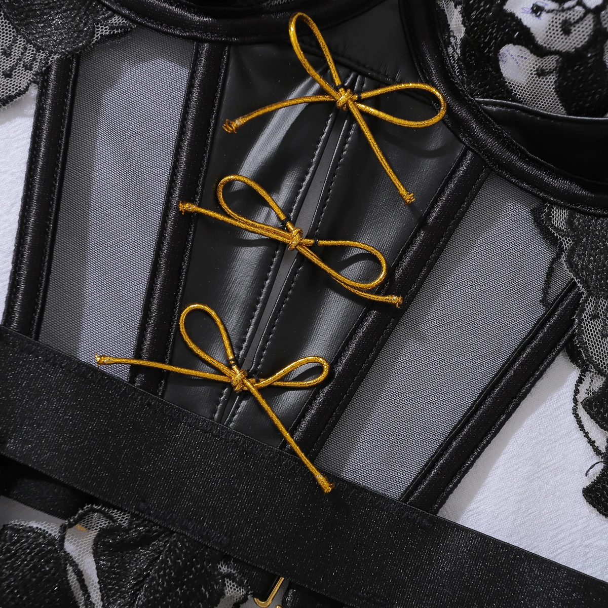 Strona Główna » Produkty » Bielizna Nocna » Body Damskie » Body koronkowe » Body z haftem, fiszbinami i wycięciami w talii
