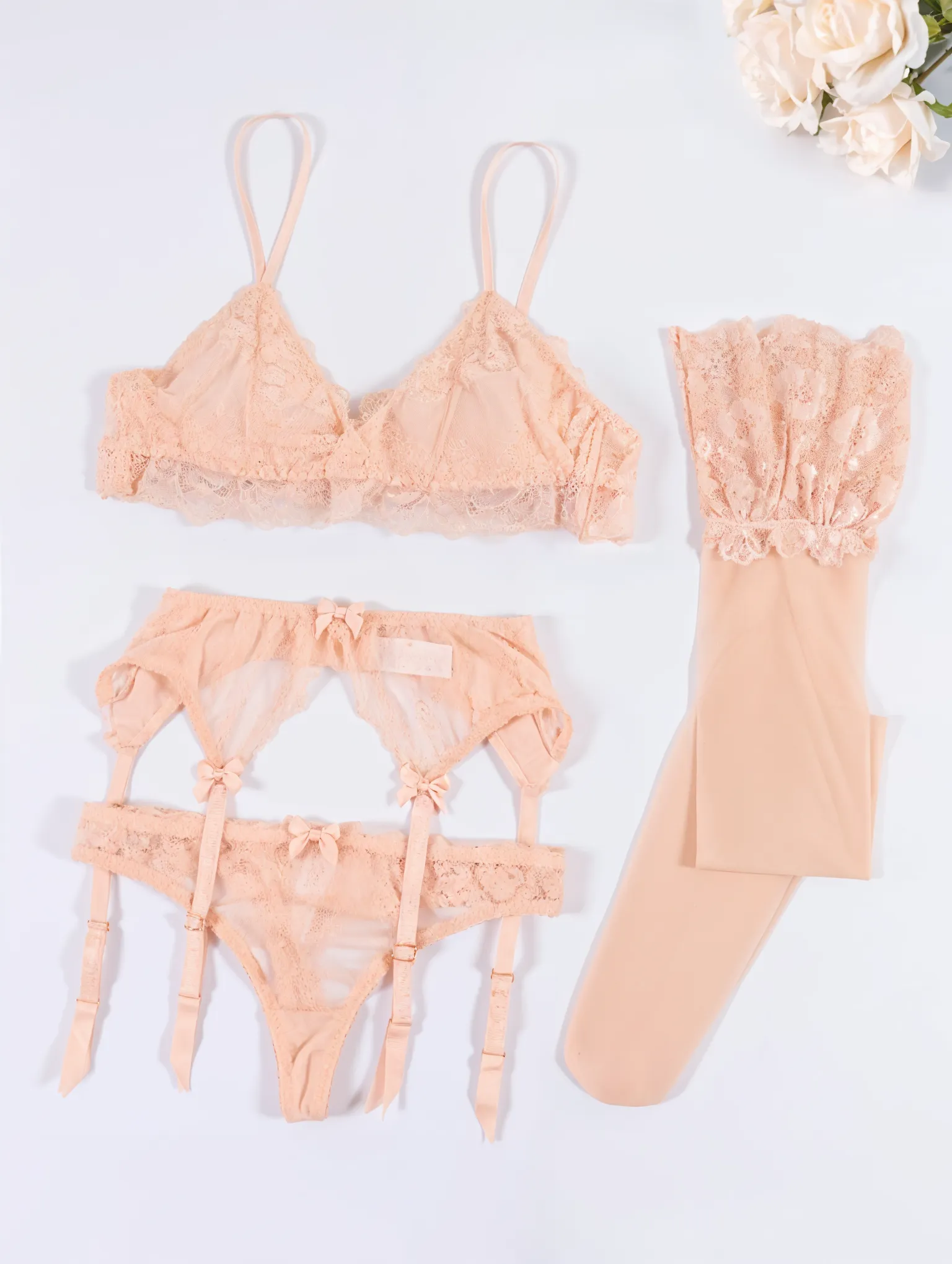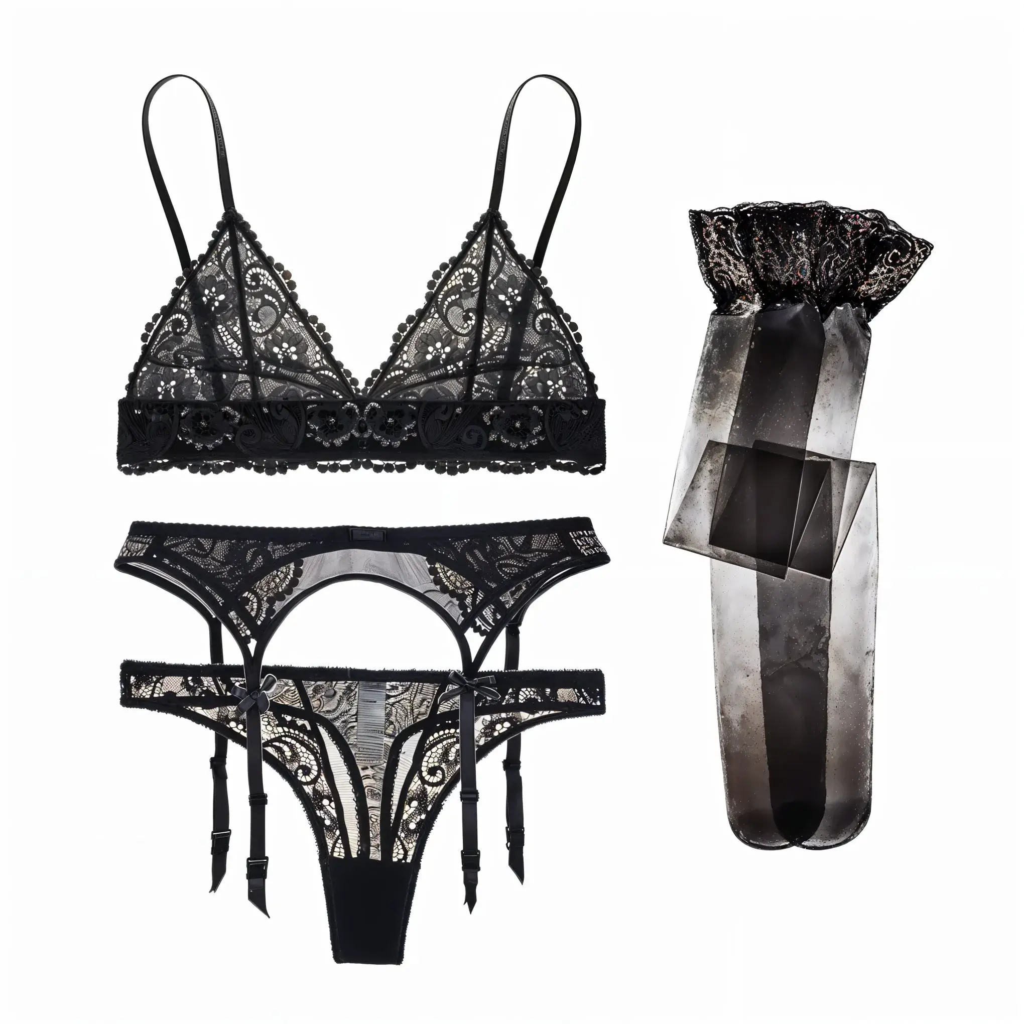 Komplet bielizny koronkowej z pończochami – Zmysłowa elegancja w jednym zestawie