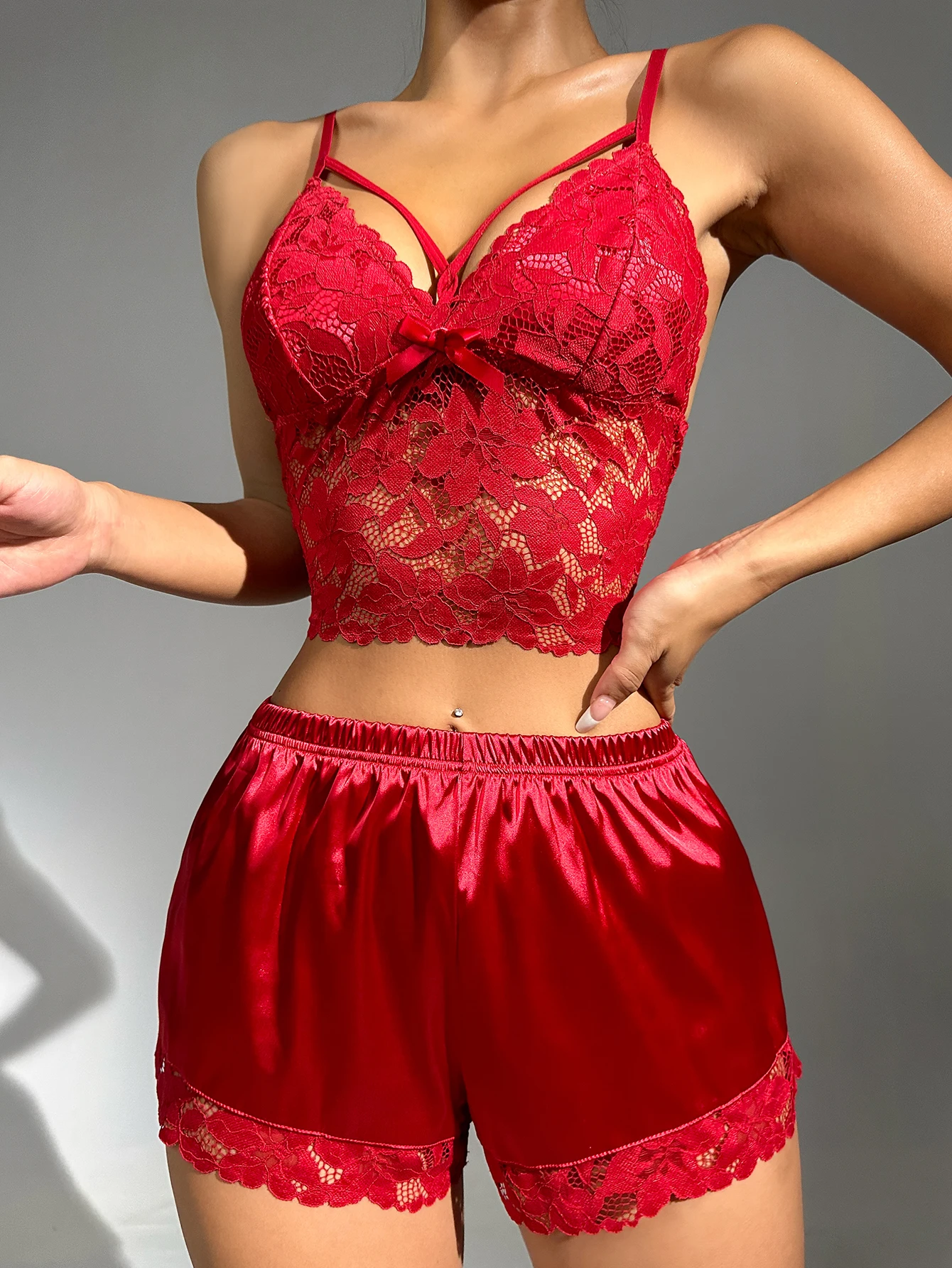 Strona Główna » Produkty » Piżamy Damskie » Dwuczęściowy komplet piżamowy z koronkowym topem i spodenkami