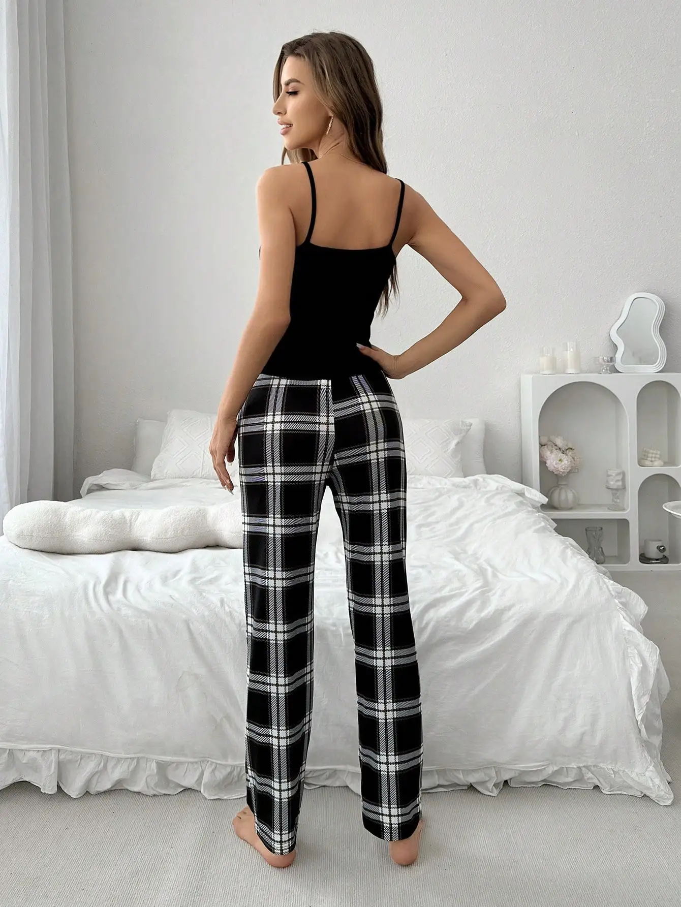 Strona Główna » Produkty » Piżamy Damskie » Dwuczęściowy zestaw piżamowy z nadrukiem i spodniami w kratę