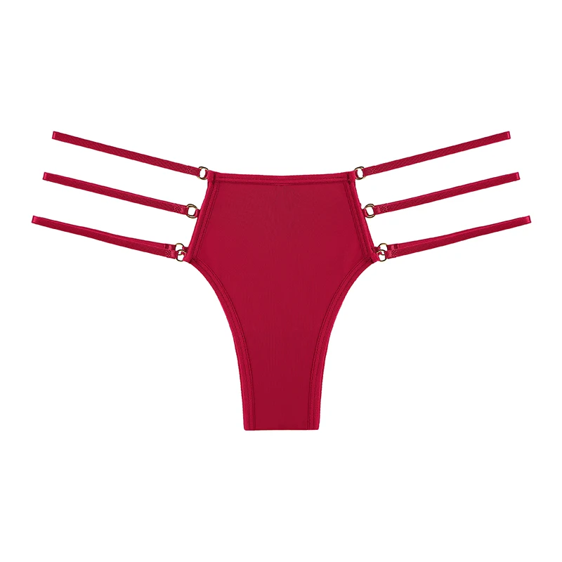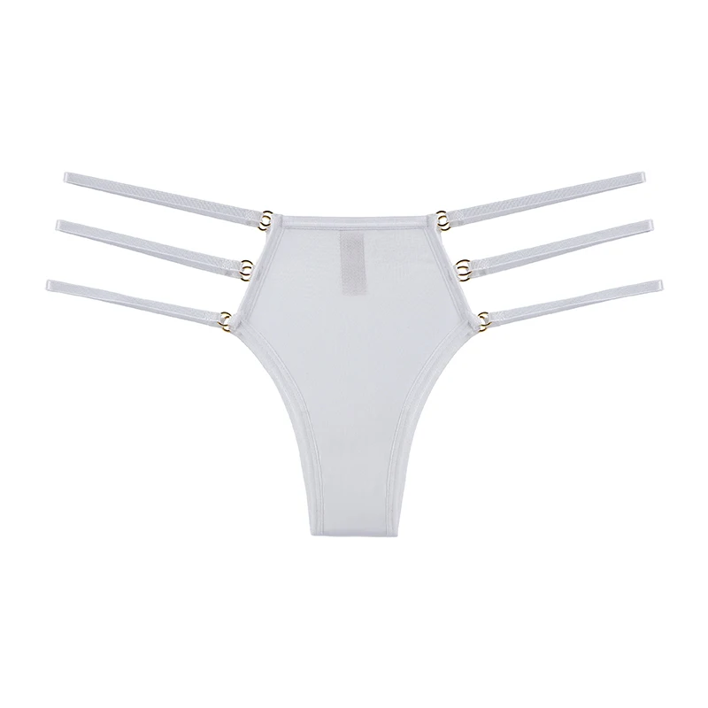 Figi damskie z bocznymi paskami i metalowymi kółeczkami