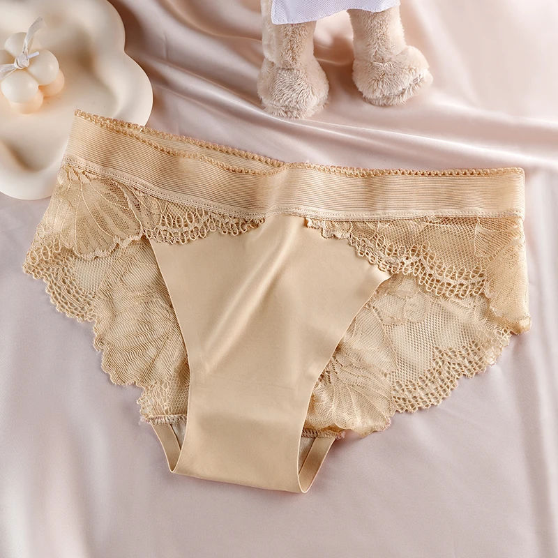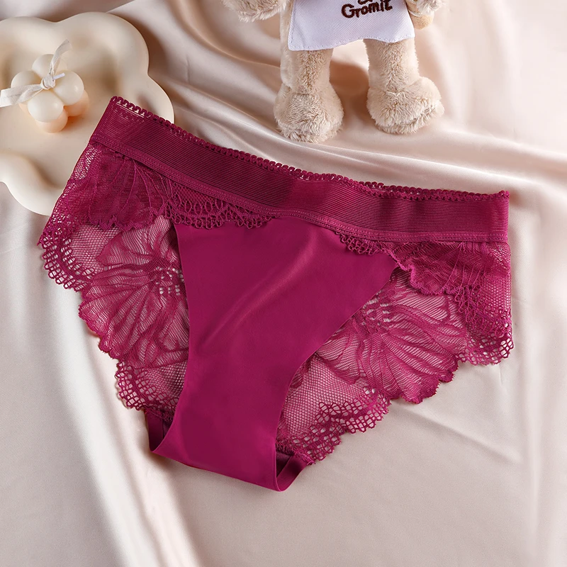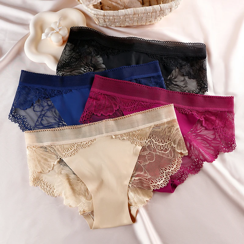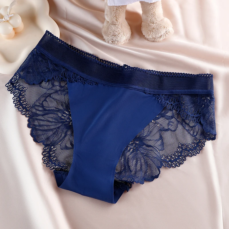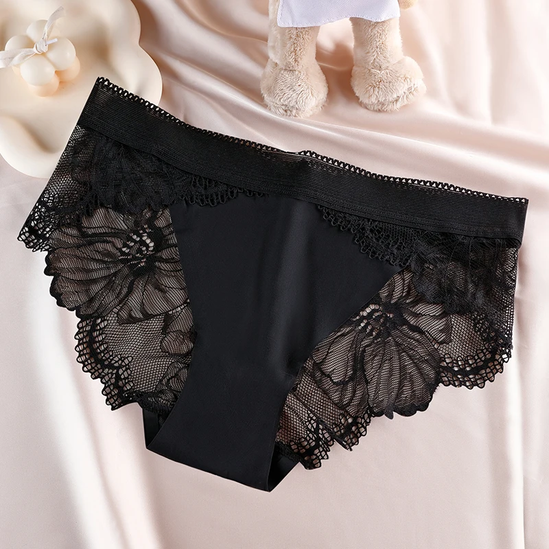 Figi damskie z koronkowym wykończeniem i kwiatowym wzorem