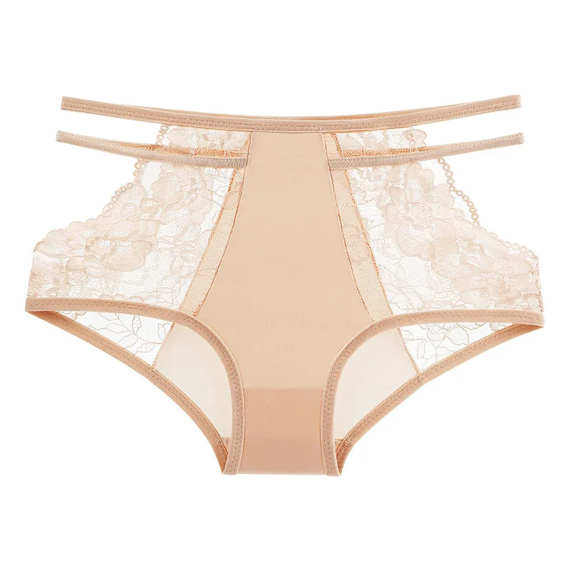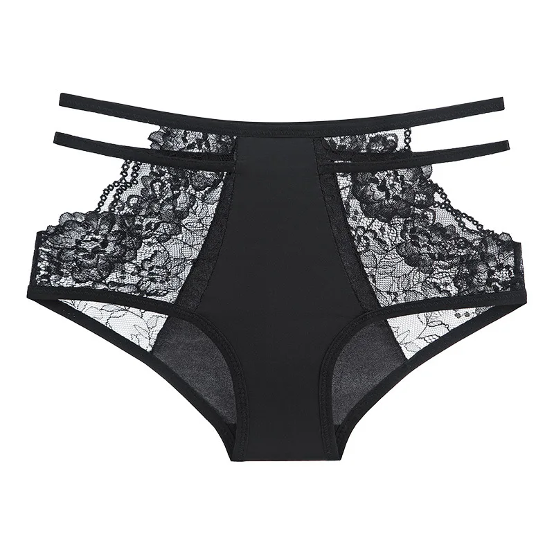 Figi damskie z koronkowymi panelami i ozdobnymi paskami