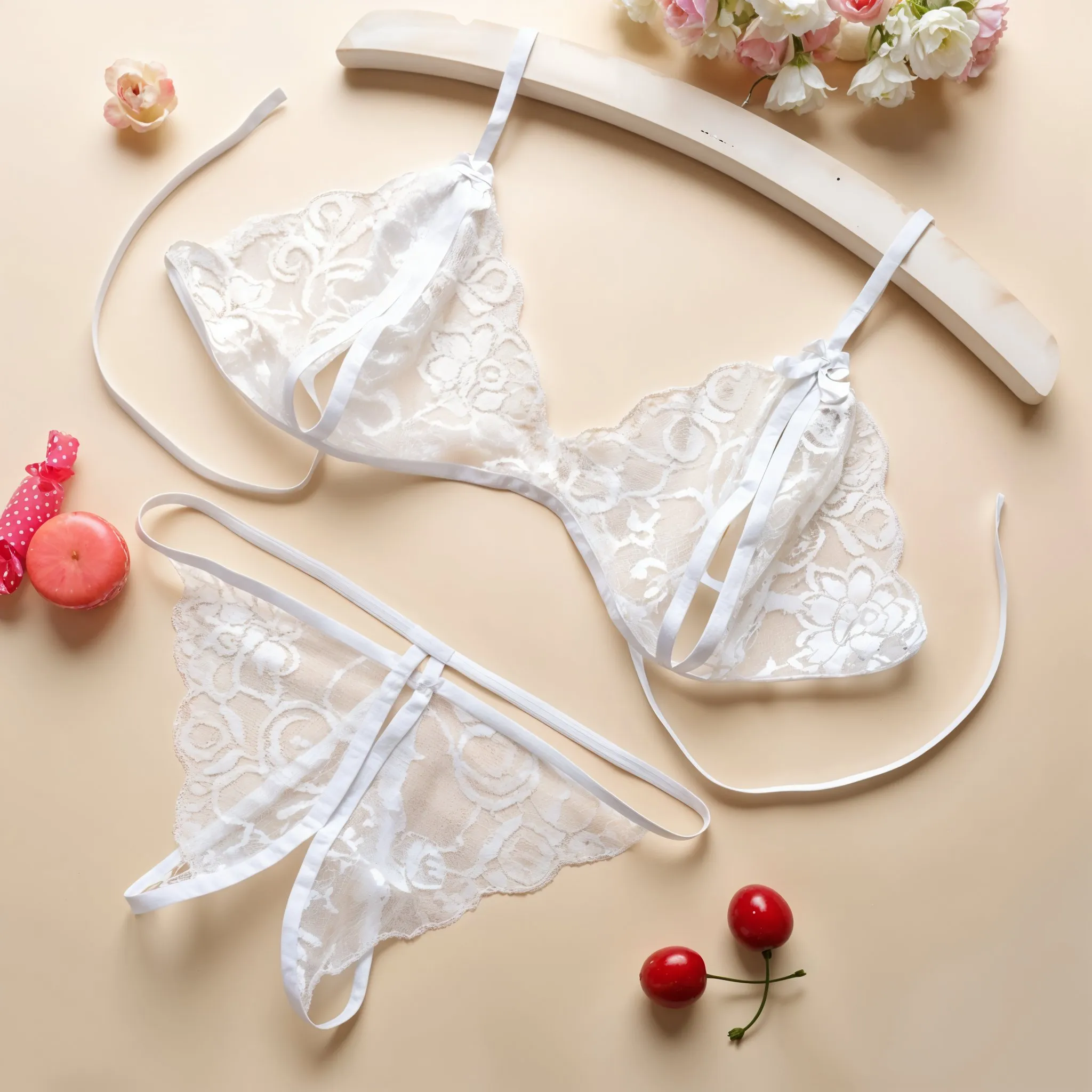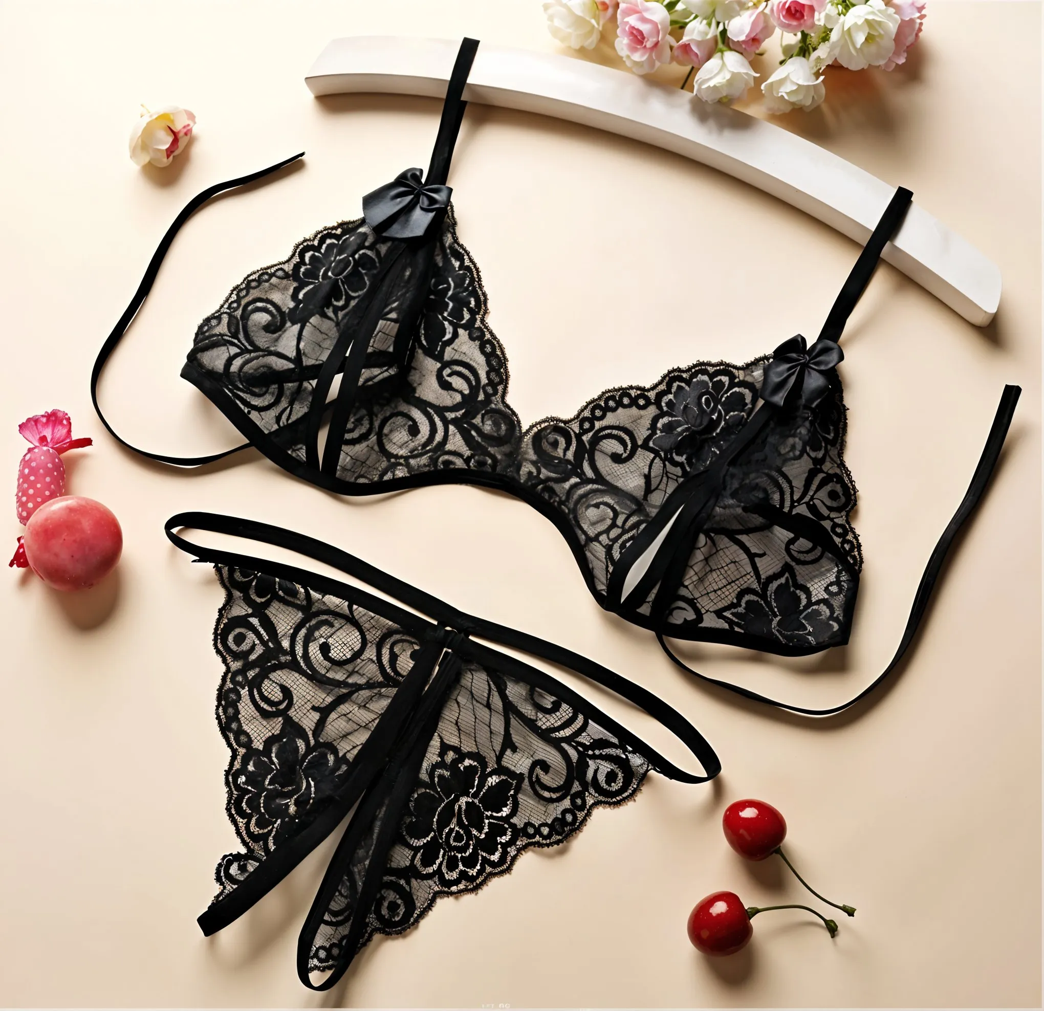 9 opinii dla Komplet bielizny koronkowej z otwartym krokiem i ozdobnymi kokardkami