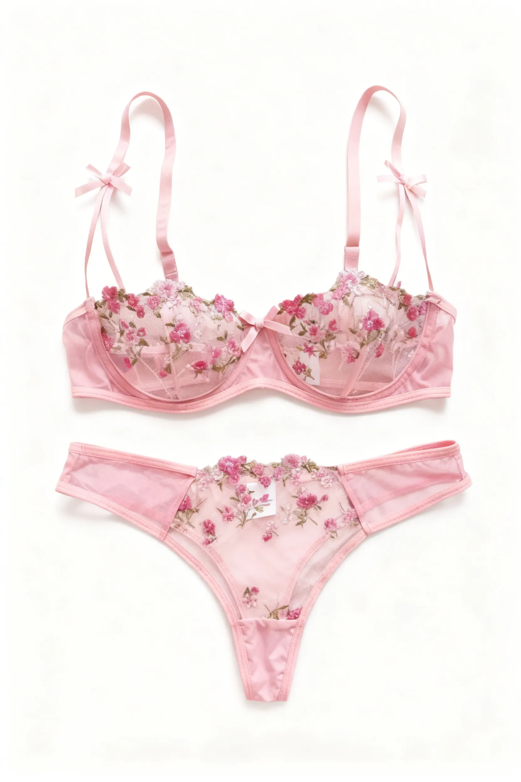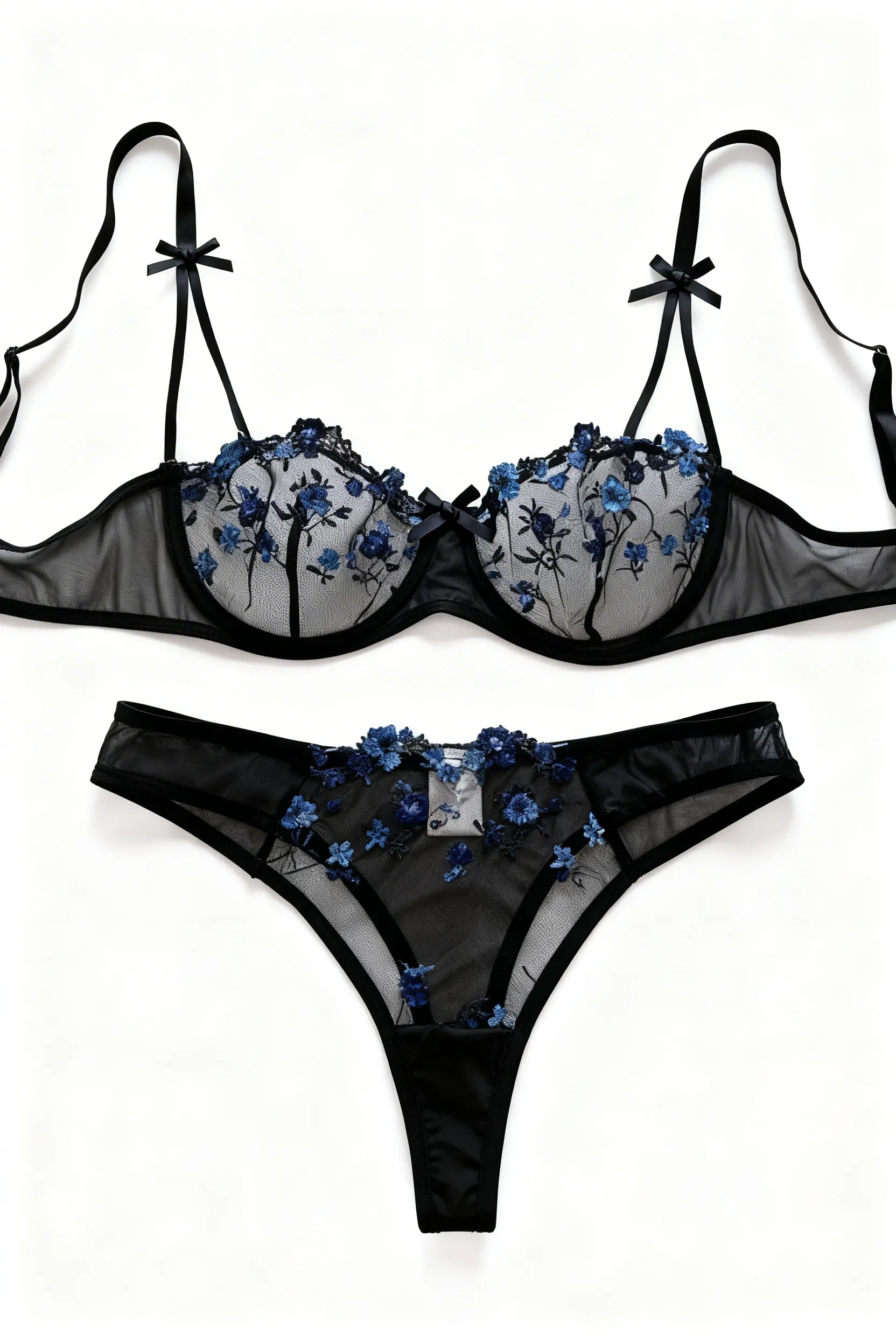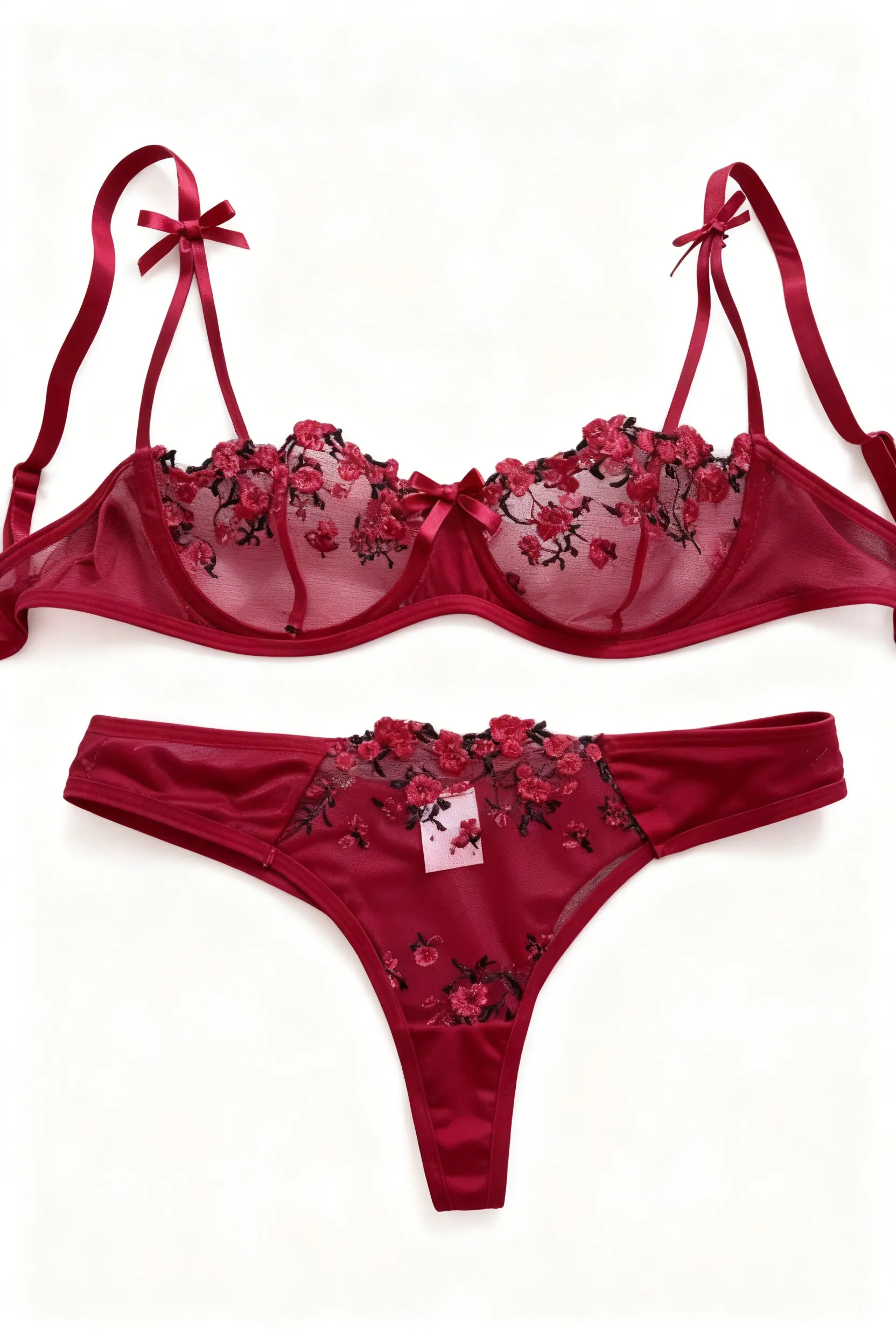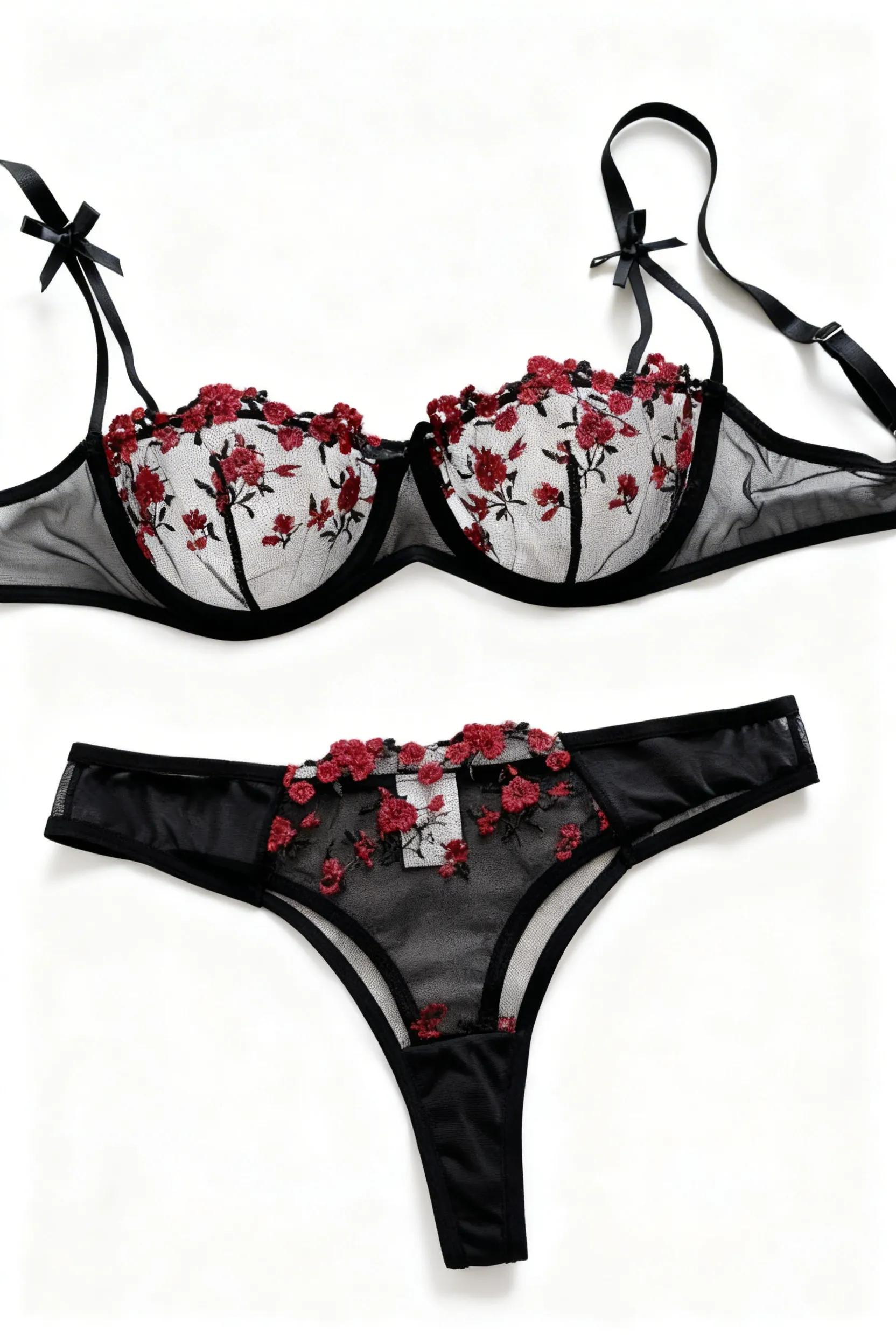 14 opinii dla Komplet bielizny z haftowanymi kwiatami i przezroczystym tiulem