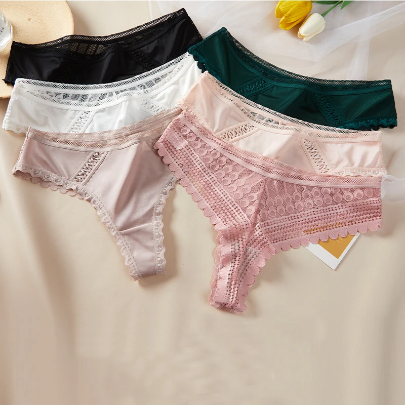 Majtki damskie o kroju bikini z koronkowymi detalami