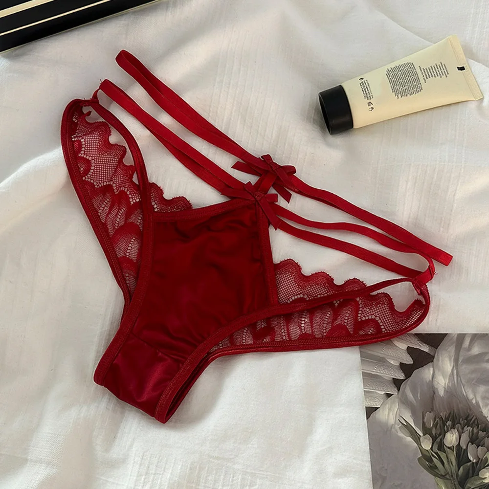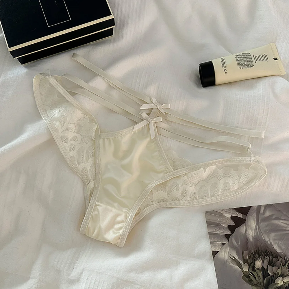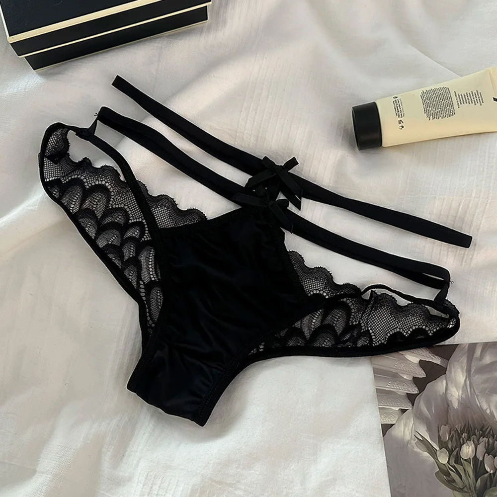 Majtki damskie z wielopaskowym wykończeniem i koronkowymi panelami