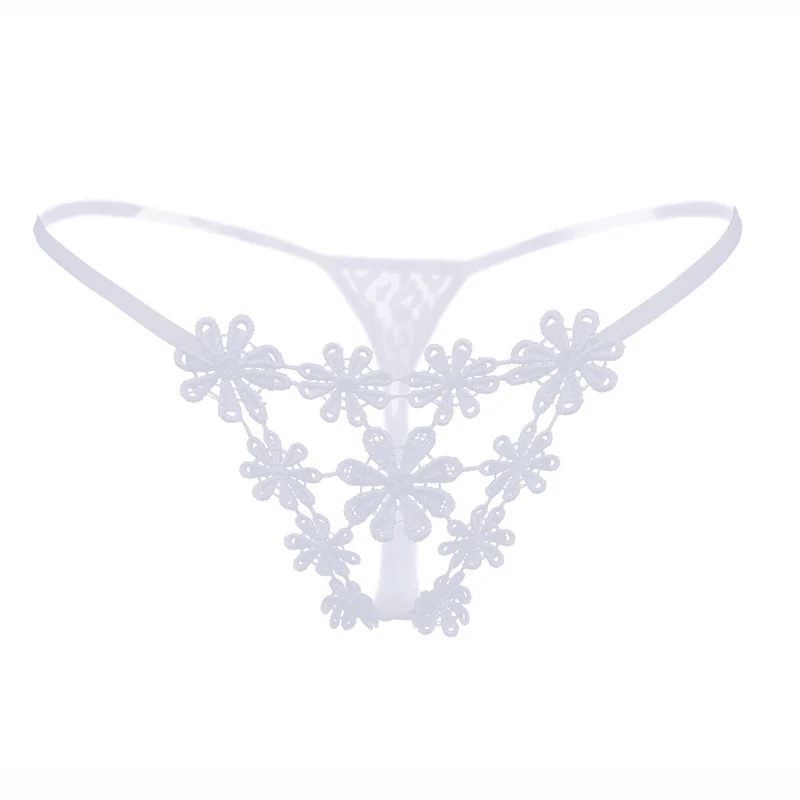 Stringi damskie z ażurowym kwiatowym panelem