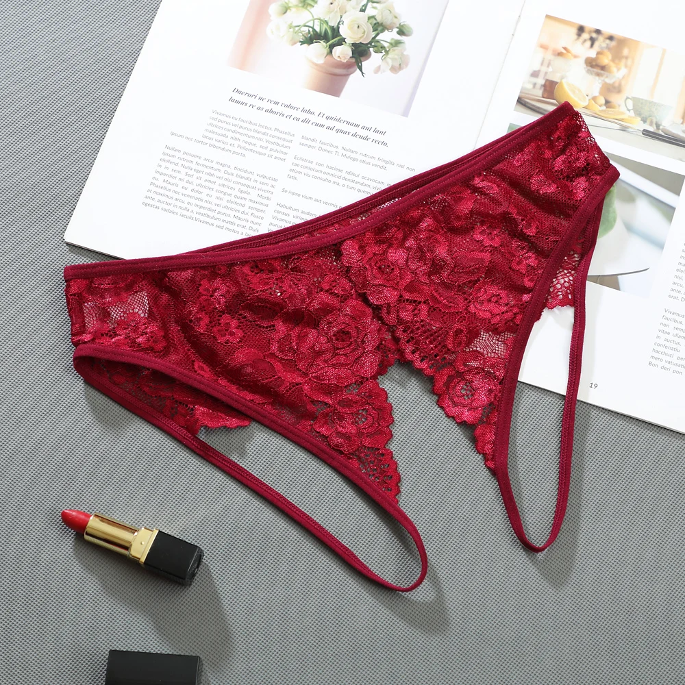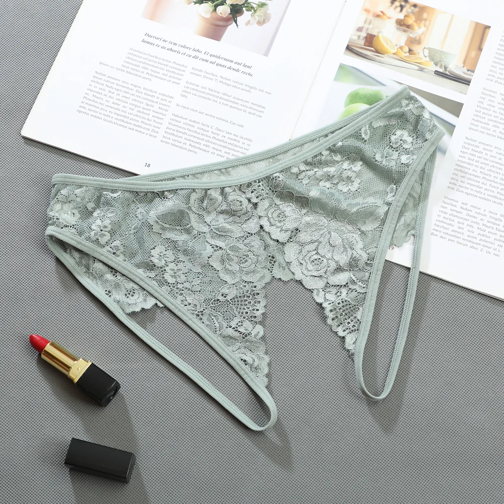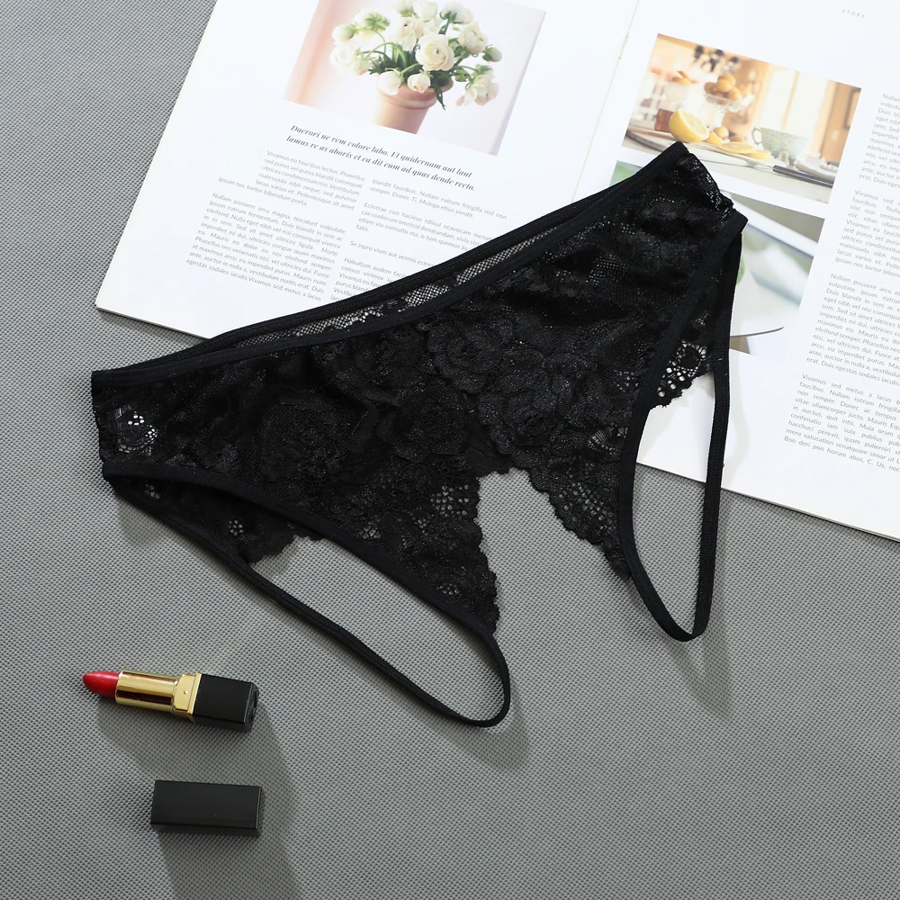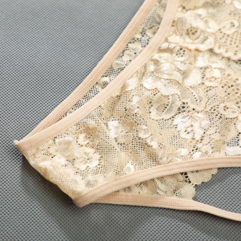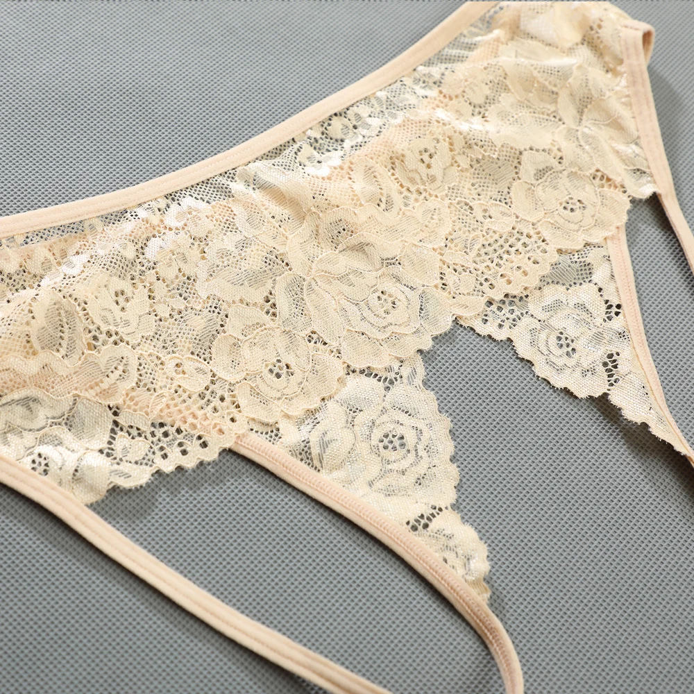 otwarty krok, koronkowe wykończenie, elastyczne paski, faliste krawędzie