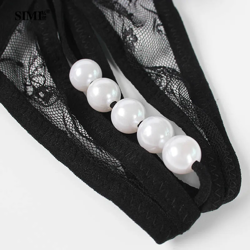Stringi koronkowe z perłami i kokardkami, otwarty krój