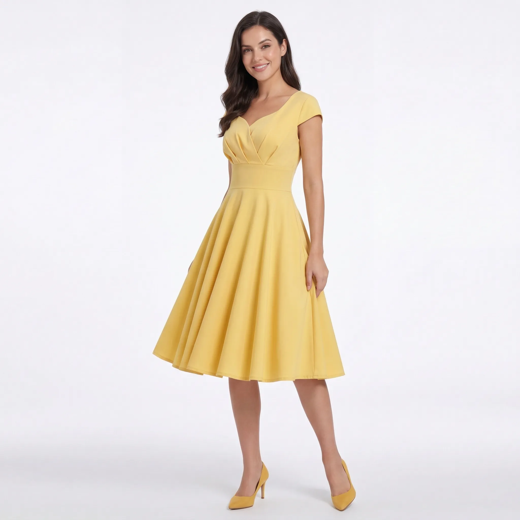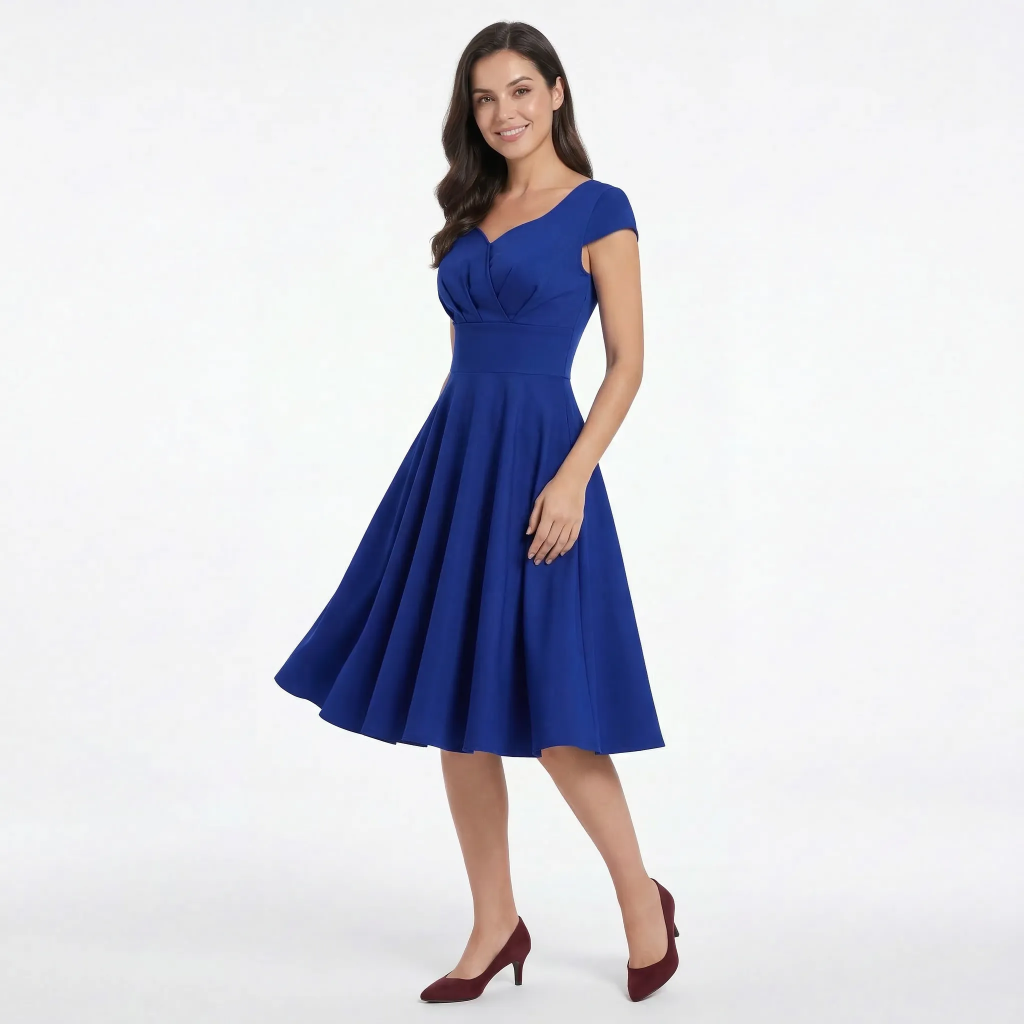 Sukienka rozkloszowana midi w stylu retro z taliowaną górą