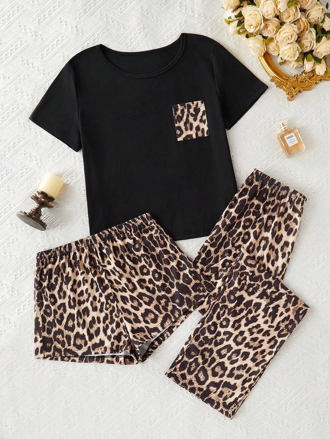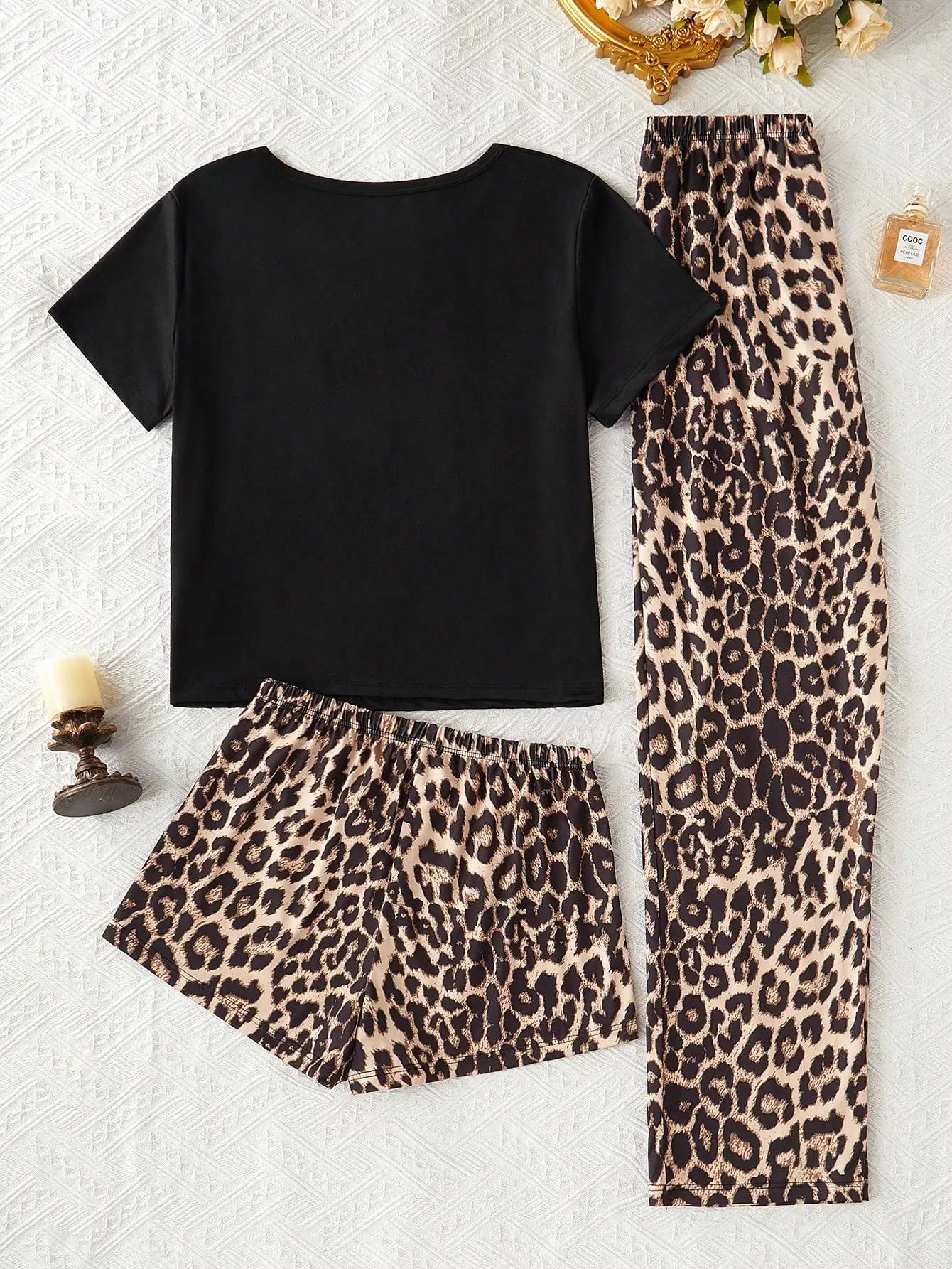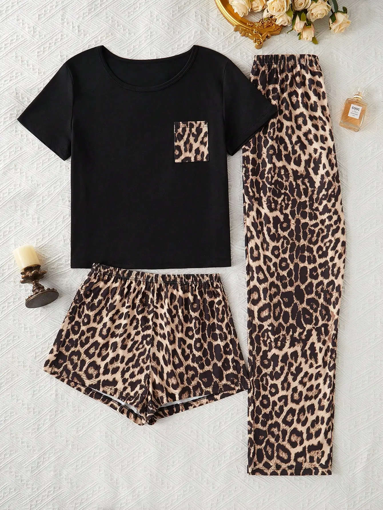Strona Główna » Produkty » Piżamy Damskie » Trójczęściowy zestaw piżamowy z motywem lamparta