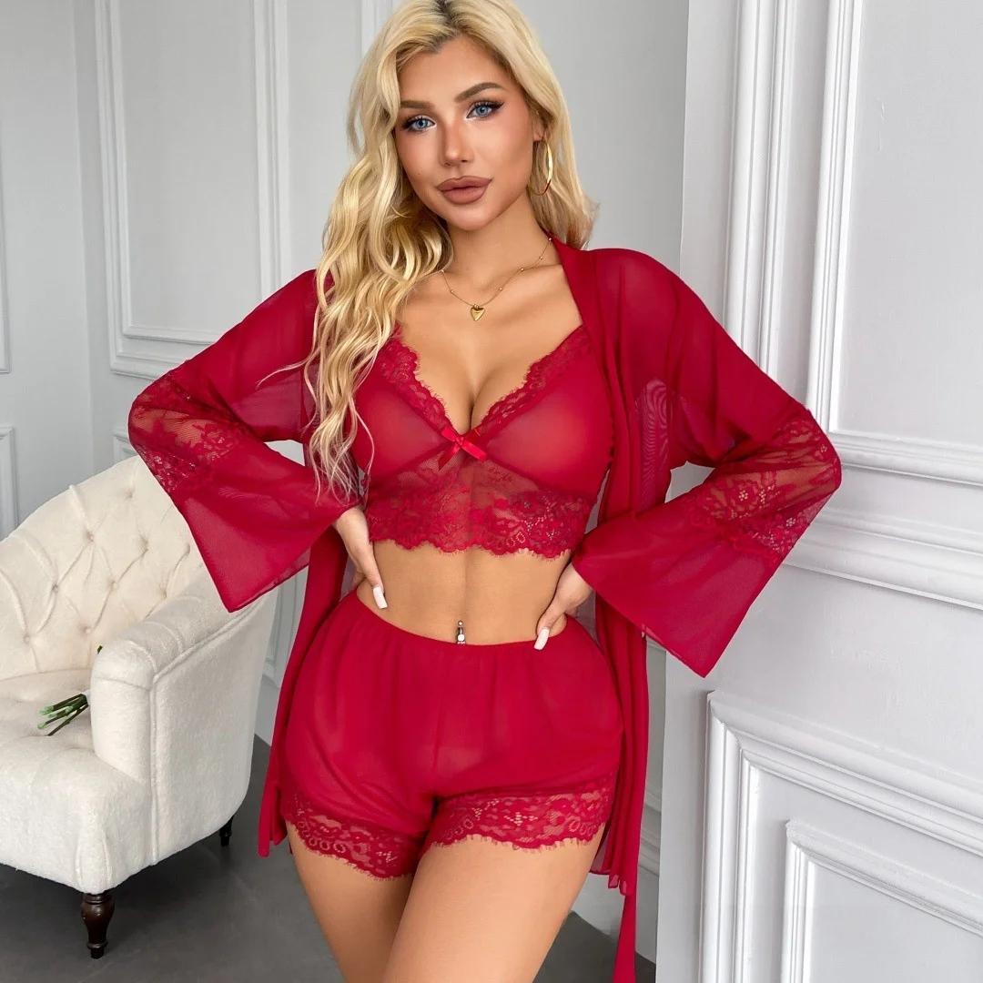 Strona Główna » Produkty » Piżamy Damskie » Trzyczęściowy komplet bielizny nocnej z koronką